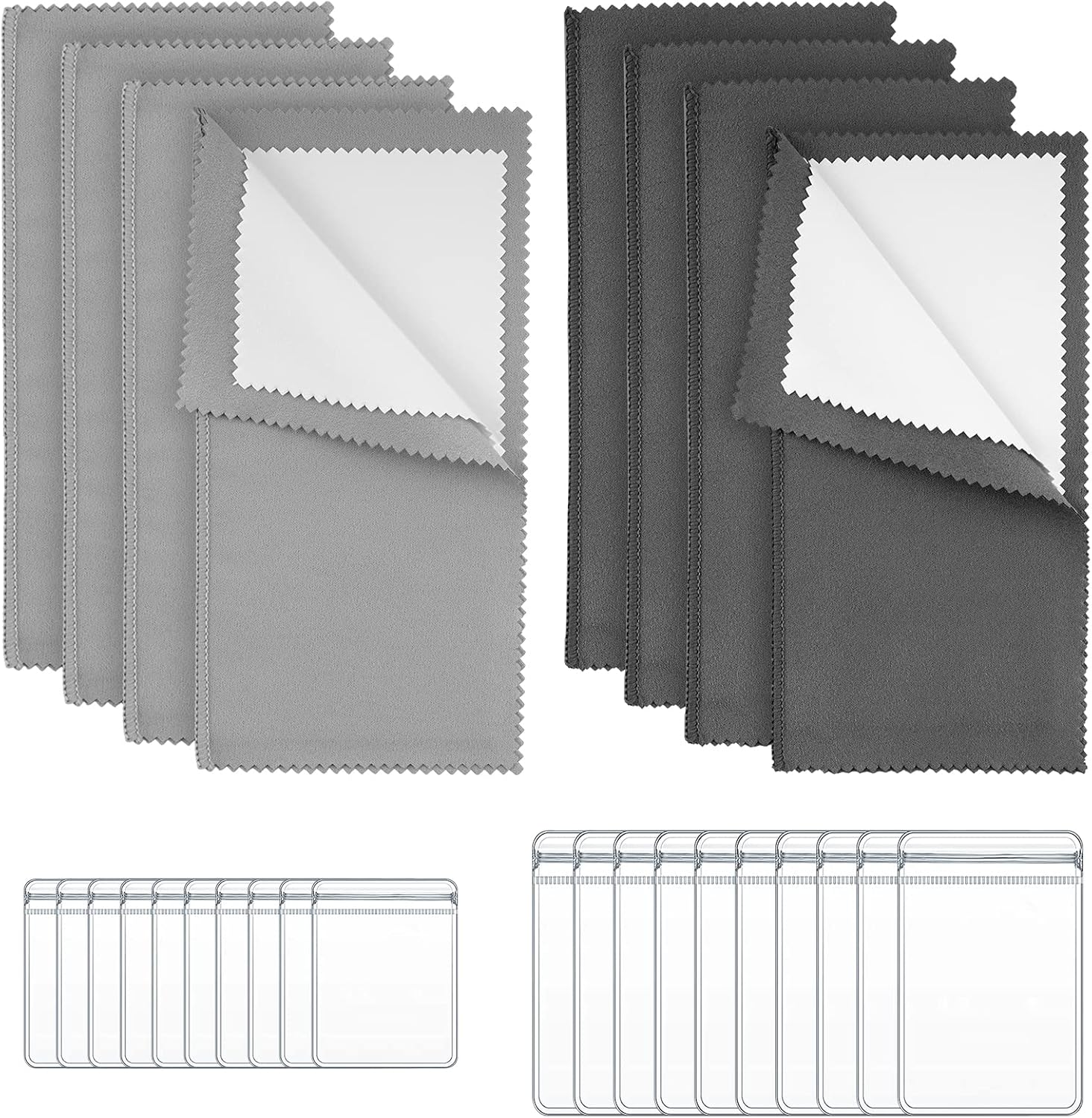 Jewelry Cleaning Cloth 8PCS with 20PCS Jewelry Storage Bag Double-Layer Silver Polishing Cloth for Jewelry Soft Microfiber Sterling Silver Cleaner Cloth for Gold Coins Watches Silverware